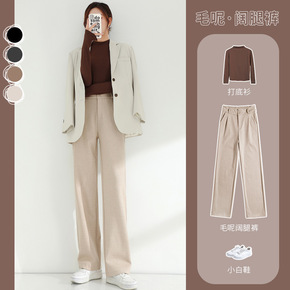 高端气质通勤毛呢裤子阔腿裤女秋冬高腰宽松百搭休闲呢...