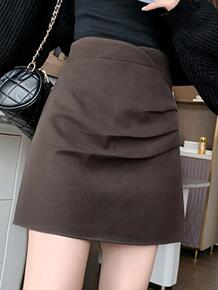 不规则褶皱半身裙女秋2022年新款百搭高腰显瘦毛呢...