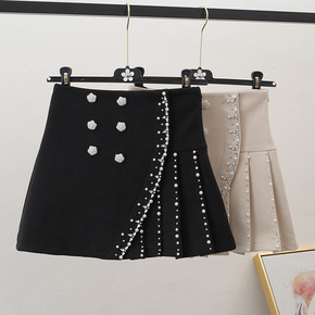 裙型:A字裙 裙长:短裙 风格类型:都市休闲 颜色:黑色、卡其色(毛呢)、白色 尺码:S、X...
