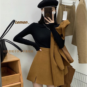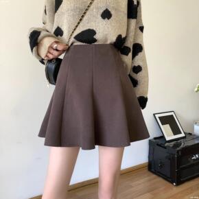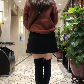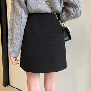 冬季毛呢半身裙短裙a字裙女黑色百搭高腰显瘦呢裙子呢...