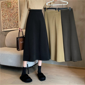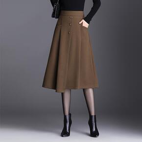 复古a字半身裙子女春装2022年新款洋气显瘦毛呢格...