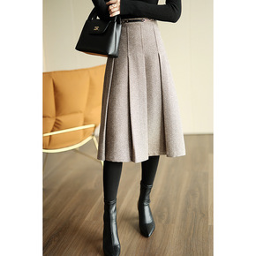 毛呢半身裙女秋冬2022新款高腰显瘦学院风百褶裙冬...