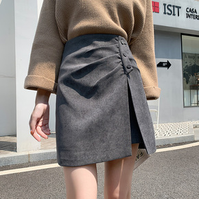 秋冬a字半身裙女式2022新款显瘦高腰不规则包臀侧...