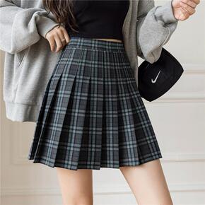a字格子半身裙女春秋2022年新款显瘦高腰千鸟格裙...