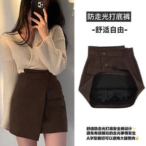 卡其色不规则短裙裙裤女秋冬秋季短款包臀高腰咖色a字...