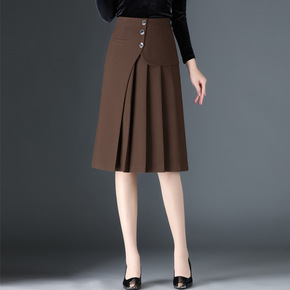 深咖色毛呢半身裙胖mm秋冬不规则半裙女中长款高腰休...