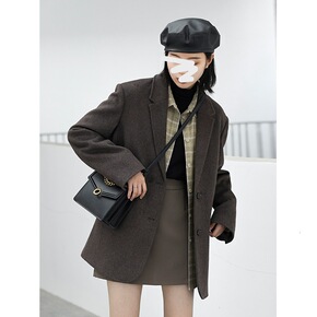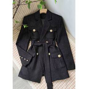 小香风西装外套女中长款秋装轻奢高级感黑色秋冬毛呢大...