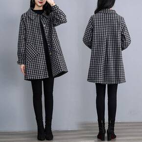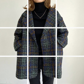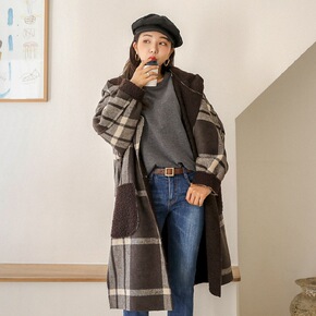 现货!2021秋冬日韩乐天新款加厚宽松中长款格纹毛...