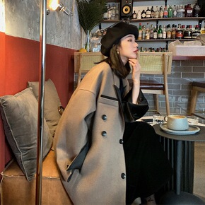 雾都大衣腔调感撞色拼接两穿毛呢大衣女2022秋冬新...