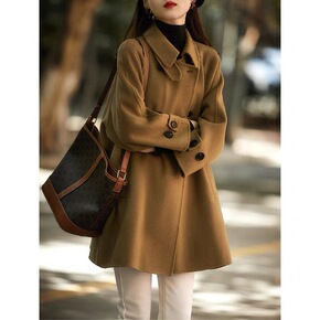 加厚毛呢外套女2021年秋冬季新款赫本风中长款小个...