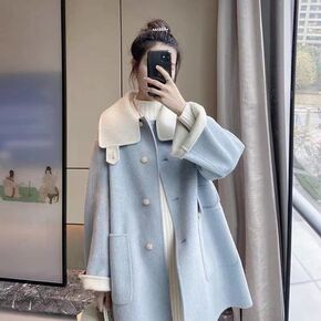 羊羔绒外套女装2021新款羊绒大衣女中长款大口袋颗...