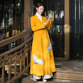 毛呢外套2021秋冬新款中国风刺绣加厚大衣一件代发...