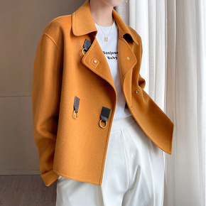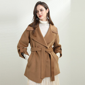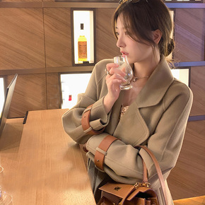 高端腰带羊毛呢子外套 2021年新款女装秋冬双面羊...