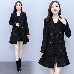 小香风西装外套女小个子2021年秋冬新款中长款双排...