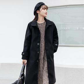 黑色双面绒大衣女中长款2021秋冬新款赫本风小个子...