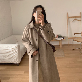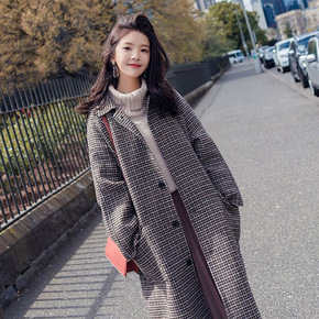 格纹呢子大衣女中长款2021年新款秋冬韩版宽松过膝...