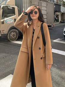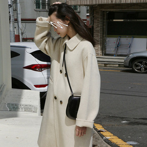 双面羊毛大衣女中长款2021年新款韩版宽松秋冬双排...