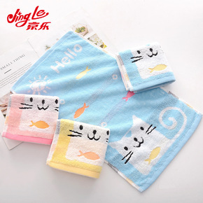 儿童毛巾猫吃鱼童巾卡通可爱长方形儿童洗脸面巾家用幼...