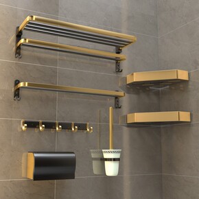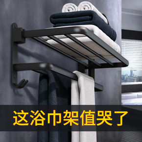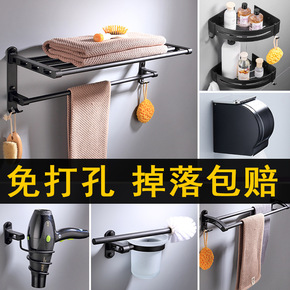 太空铝黑色毛巾架免打孔组合套装卫生间浴室置物架墙上...