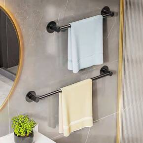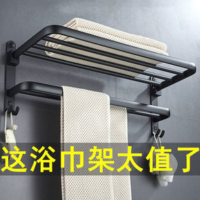 黑色免打孔毛巾杆挂毛巾架浴室置物架厕所浴巾收纳架卫...