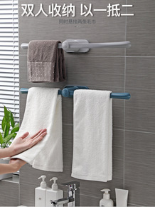 毛巾杆免打孔卫生间加长浴室双杆壁挂式毛巾架厕所单杆...