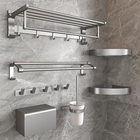 包邮毛巾架免打孔太空铝浴巾架浴室置物架卫浴套装卫生...