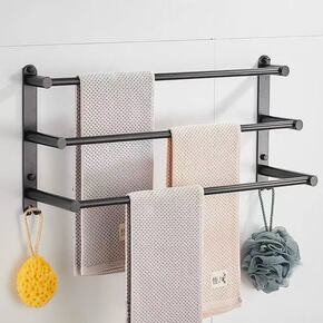 免打孔太空铝毛巾架卫生间浴室双杆毛巾挂杆晾浴巾收纳...