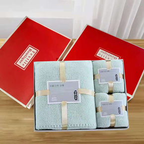 毛巾浴巾套装礼盒装 柔软礼品珊瑚绒吸水毛巾浴巾三件...