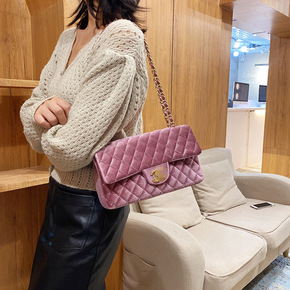 丝绒包女包2021新款潮小香风菱格链条包大号外贸单...