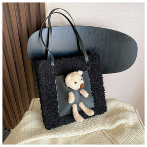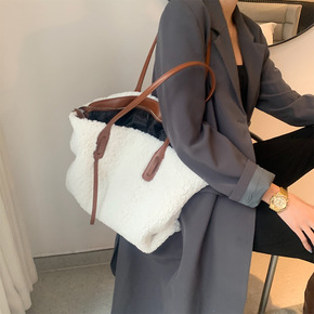 新款2021时尚羊羔毛托特包女毛绒简约手提包大容量...
