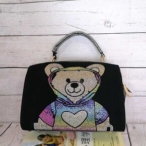 欧美彩色烫钻女包配牛皮可爱抱抱熊单肩斜挎包外贸爆款...