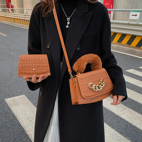 流行迷你小包包2021新款潮秋冬毛绒女包简约单肩包...