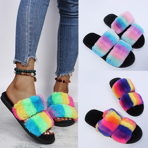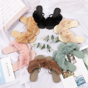 2021年秋冬新款小清新毛毛拖鞋女外穿平底舒适居家...