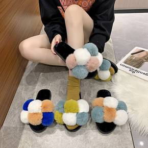 毛毛球拖鞋女外穿流行新款时尚可爱家居懒人平底圆头一...