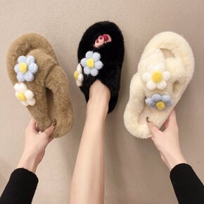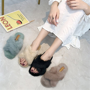 仙女风交叉毛毛拖鞋女2021秋冬季新款韩版居家室内...