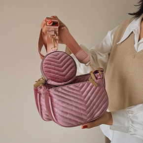 上新女包包2021新款潮流金丝绒三件套单肩包时尚V...