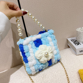亚马逊跨境毛线针织小雏菊花朵提花手提单肩包女大容量...