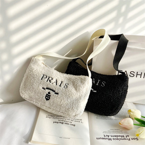 新款时尚单肩包毛绒卡通大容量手提包便携百搭收纳包多...