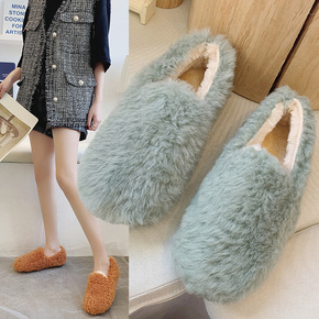 2020秋冬新款平底毛毛豆豆鞋学生保暖女棉鞋网红抖...