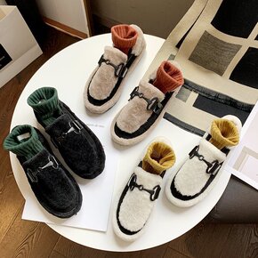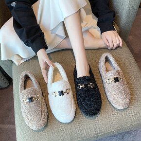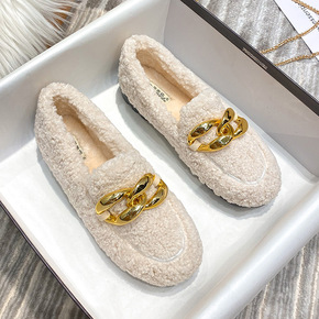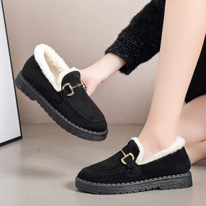 豆豆鞋女冬加绒2021新款百搭平底冬季毛毛鞋女外穿...