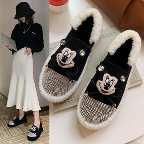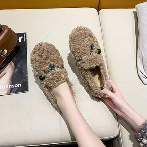 毛毛鞋女冬季外穿加绒水钻网红韩版一脚蹬豆豆棉鞋20...
