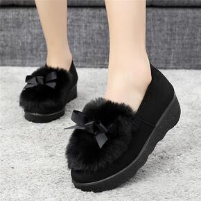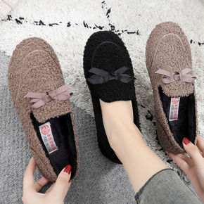 毛毛鞋女外穿2020秋冬平底蝴蝶结加绒豆豆棉鞋一脚...