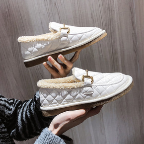 加绒一脚蹬单鞋女2020新款毛毛鞋女冬外穿百搭豆豆...