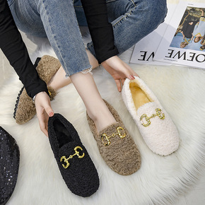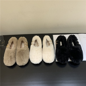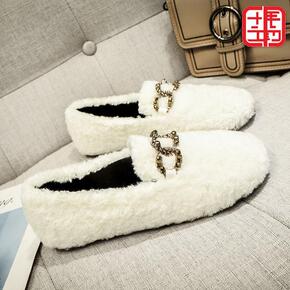 毛毛鞋女秋冬季外穿加绒平底鞋2020年新款冬鞋豆豆...
