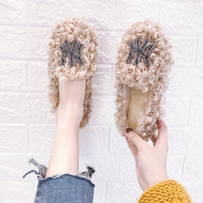 网红毛毛鞋女冬季外穿平底一脚蹬懒人鞋羊卷毛棉瓢鞋女...