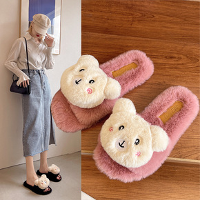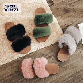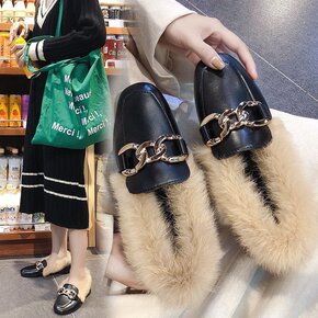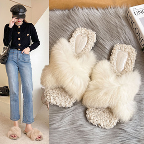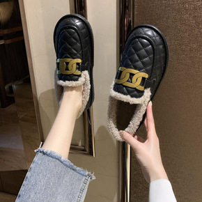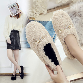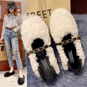 毛毛鞋女外穿2019秋冬季新款百搭平底网红加绒懒人...