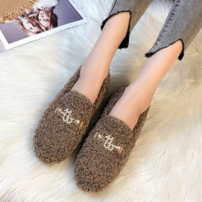 平底毛毛鞋女外穿2021秋冬季加绒羊羔毛冬鞋一脚蹬...
