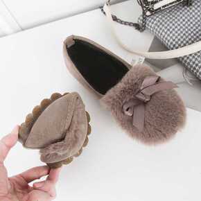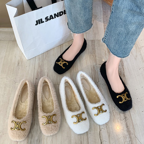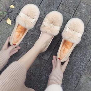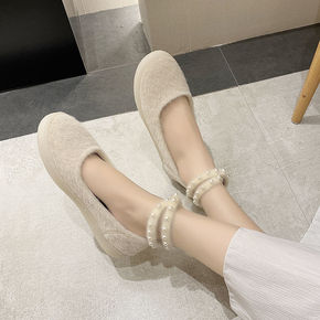软底仙女单鞋韩版2022加绒毛毛鞋秋冬外穿珍珠带学...