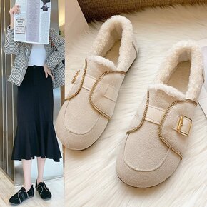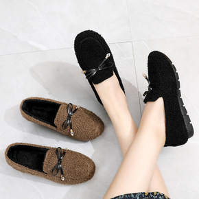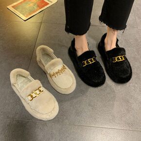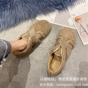 厚底羊羔加棉毛毛鞋女秋冬季外穿加绒皮面豆豆棉鞋一脚...