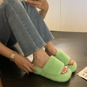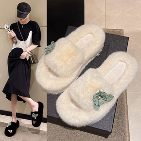 一件也发结毛毛拖鞋女2021秋冬新款百搭外穿平底仙...